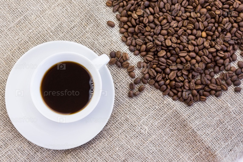 Чашка кофе в мешковине