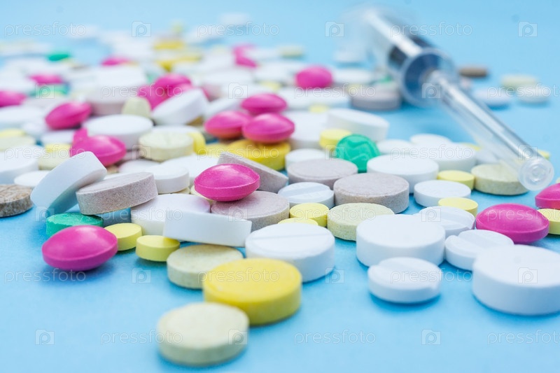 Таблетки на синем фоне