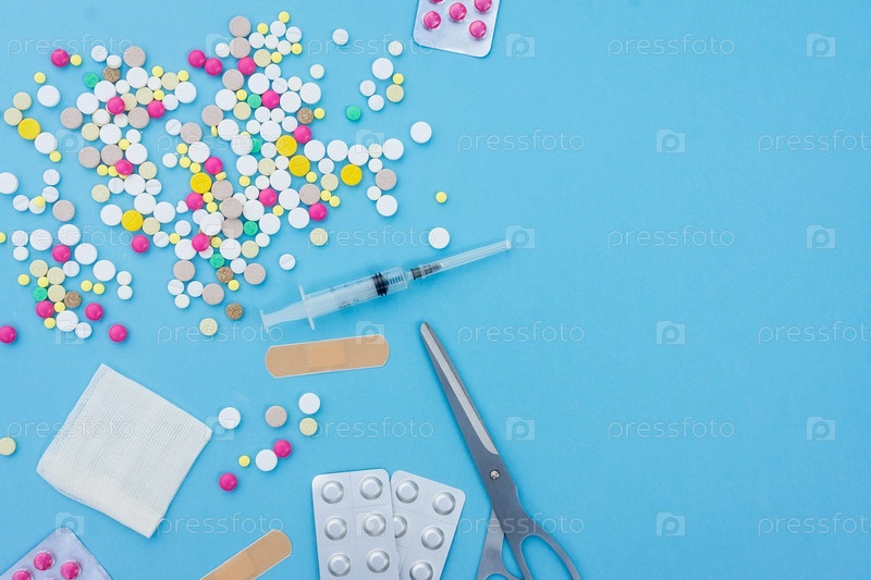 Таблетки на синем фоне