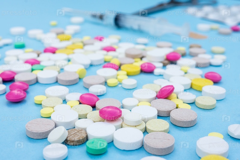 Таблетки на синем фоне