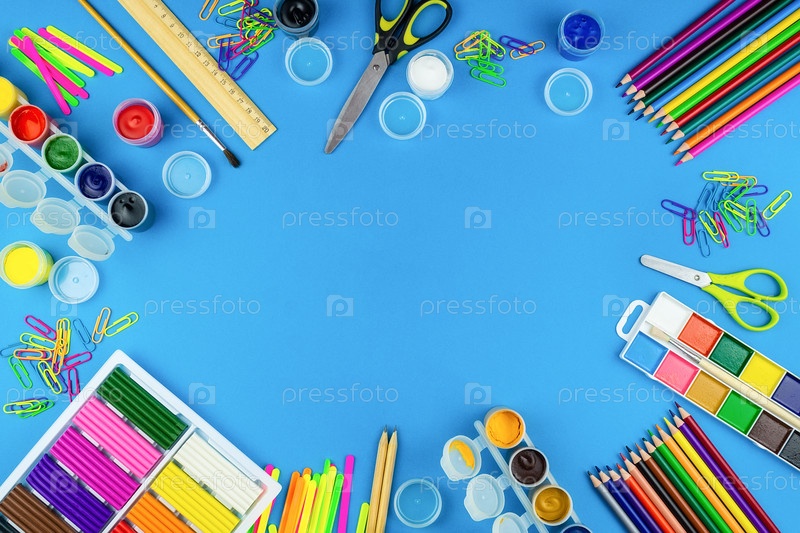 Школьные принадлежности на синем фоне