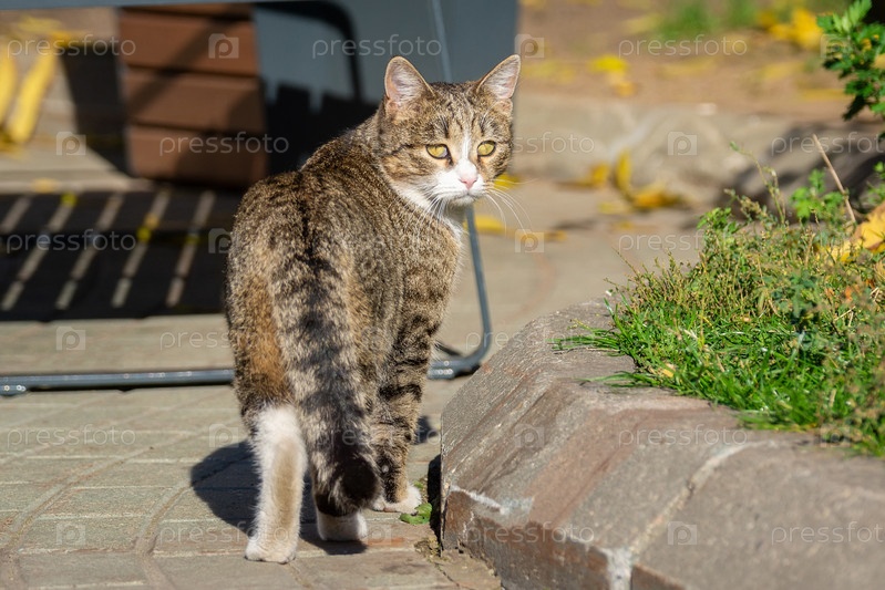 Серый кот в природе