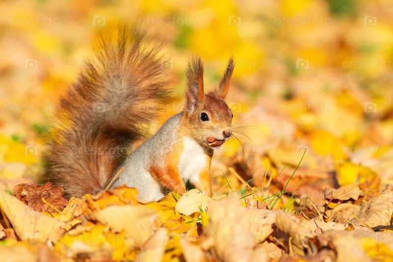 Белка в осеннем парке