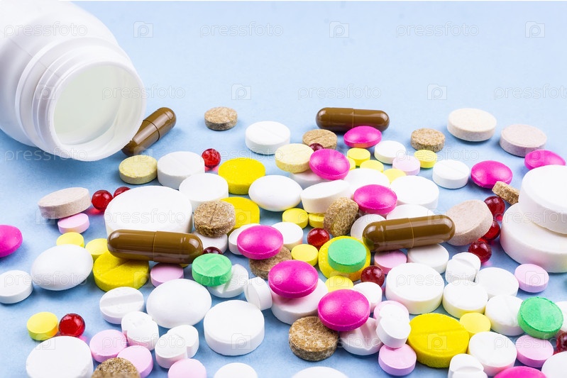 Таблетки на синем фоне