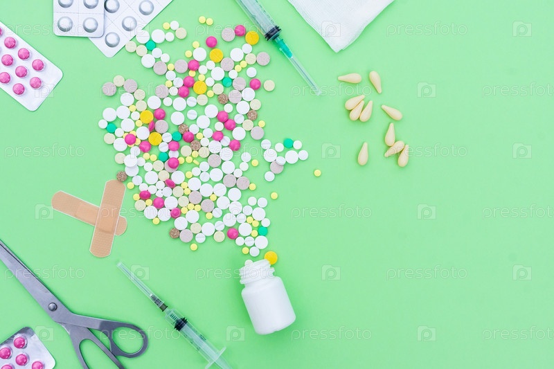 Таблетки на зеленом фоне