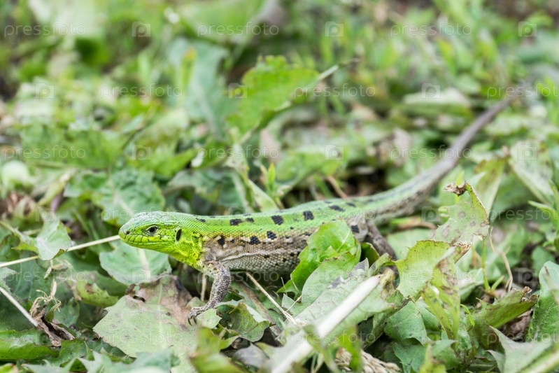 Зеленая ящерица в траве