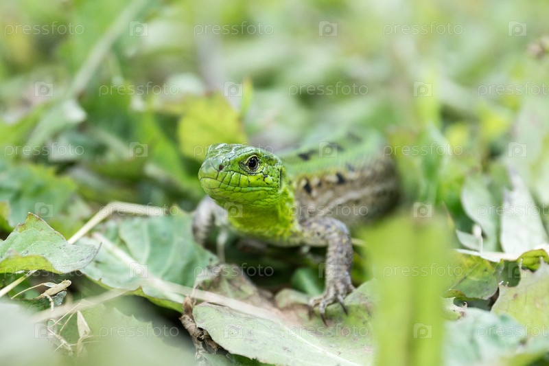 Зеленая ящерица в траве