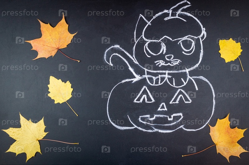 Хэллоуинская тыква на доске из мела