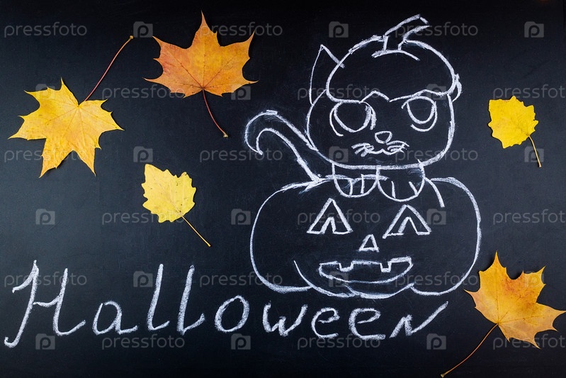 Хэллоуинская тыква на доске из мела