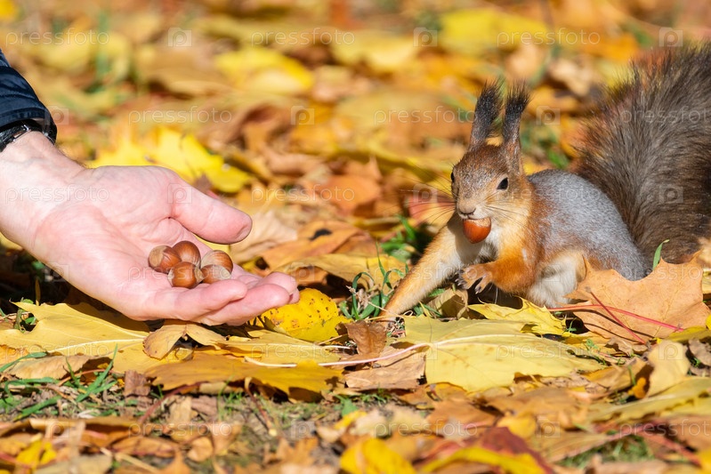 Белка в осеннем парке