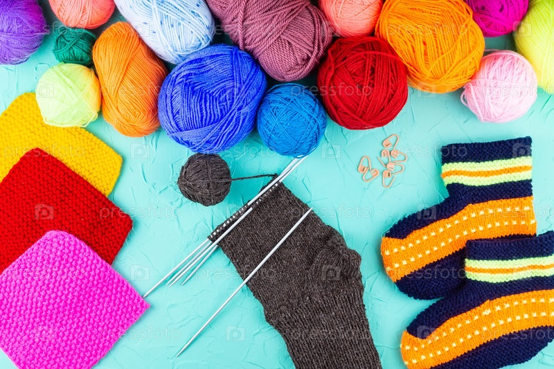 Девочка вяжет носок спицами