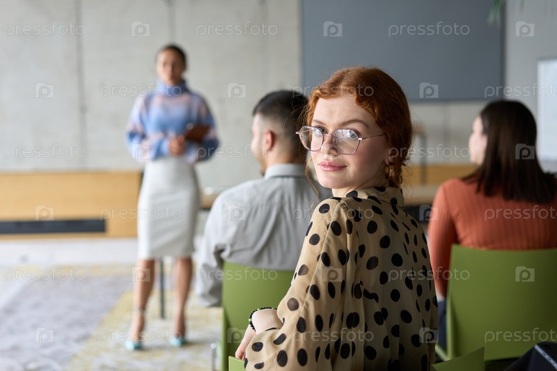 Группа разнообразных деловых людей сосредоточенно сидит в современном офисе, активно участвуя в обучающем занятии под руководством инструктора, уделяя особое внимание последним технологическим достижениям в мире бизнеса