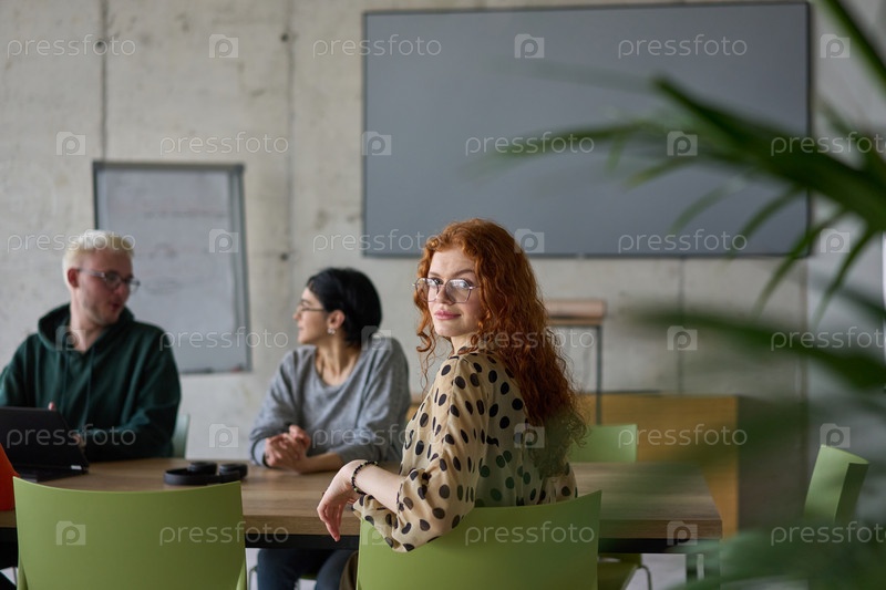 Молодая, разнообразная бизнес-команда сидит вместе в современном офисе, обменивается идеями и бизнес-планами, укрепляя сотрудничество и инновации для будущего успеха
