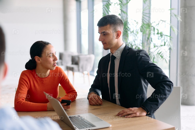 Молодая, разнообразная бизнес-команда сидит вместе в современном офисе, обменивается идеями и бизнес-планами, укрепляя сотрудничество и инновации для будущего успеха