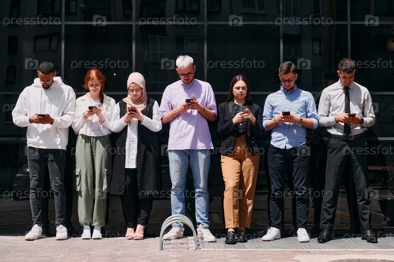 Группа разносторонних и уверенных в себе бизнесменов позирует вместе, излучая успех, амбиции и единство, отражая суть динамичной и вдохновляющей деловой среды