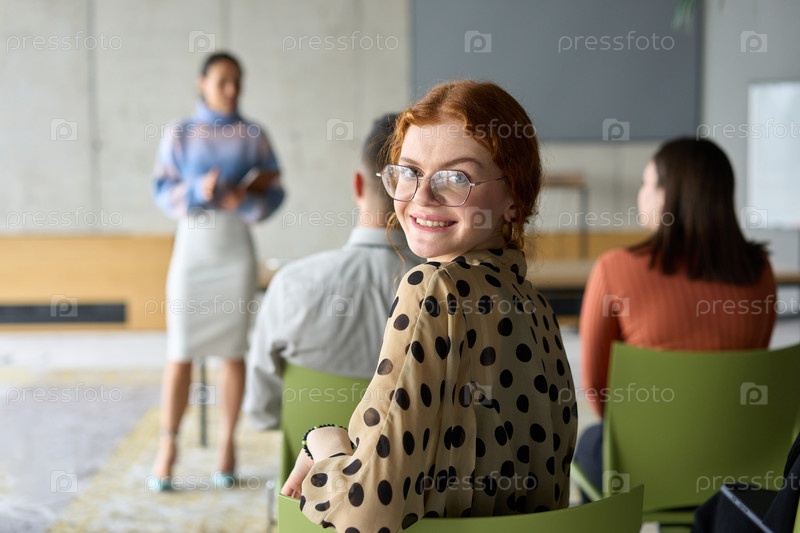 Группа разнообразных деловых людей сосредоточенно сидит в современном офисе, активно участвуя в обучающем занятии под руководством инструктора, уделяя особое внимание последним технологическим достижениям в мире бизнеса