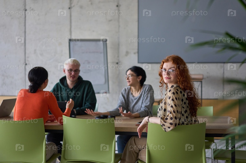 Молодая, разнообразная бизнес-команда сидит вместе в современном офисе, обменивается идеями и бизнес-планами, укрепляя сотрудничество и инновации для будущего успеха