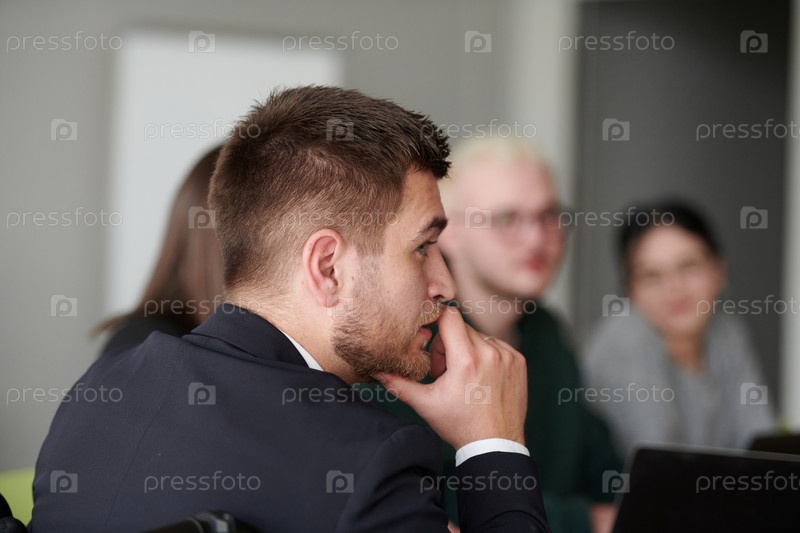 Разнообразная многонациональная бизнес-команда участвует в совместной встрече, обсуждая стратегии и решения в современной офисной обстановке