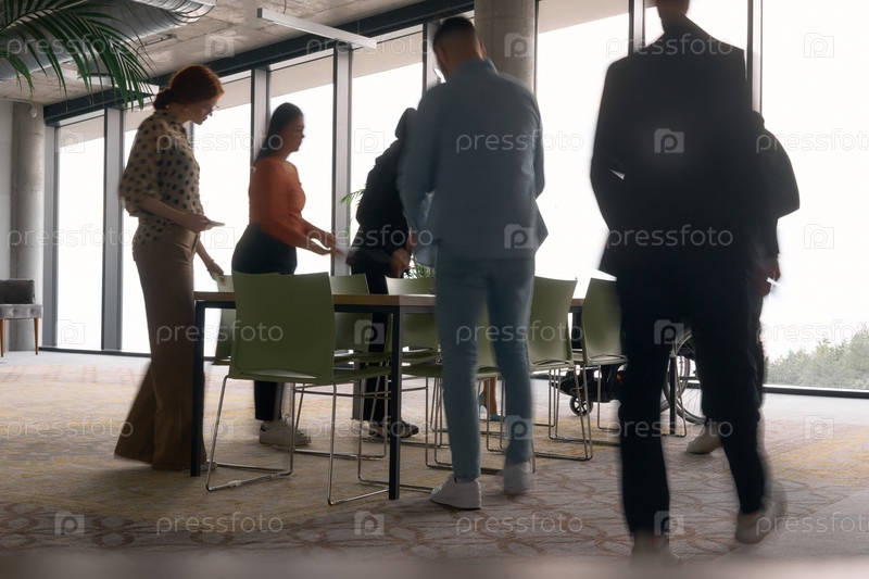 Разнообразная многонациональная бизнес-команда участвует в совместной встрече, обсуждая стратегии и решения в современной офисной обстановке