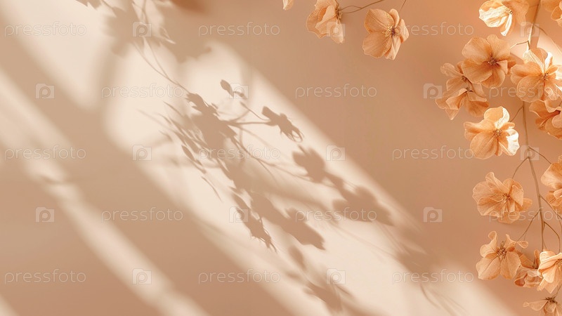 Фон с сухоцветами и тенями в бежевых тонах. Макет с копировальным пространством
