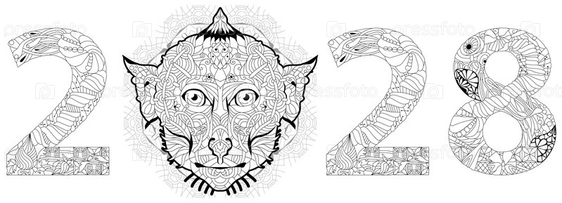 Нарисованная вручную обезьянка в технике зентангл номер 2028 для раскрашивания, для футболки и других украшений