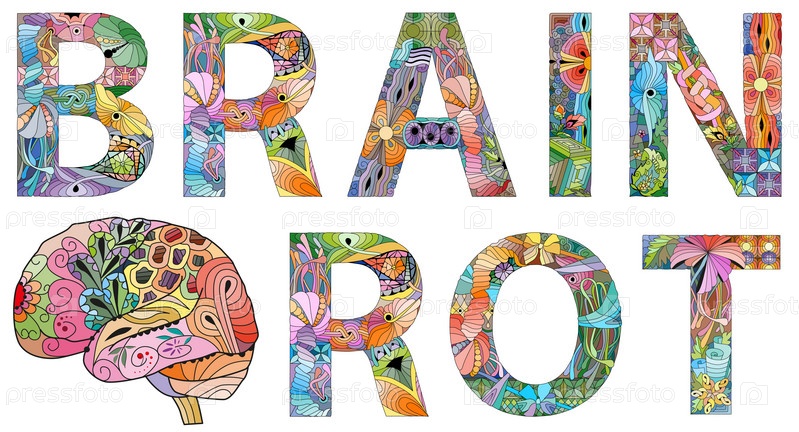 Слова BRAIN ROT в стиле абстрактного рисунка от руки