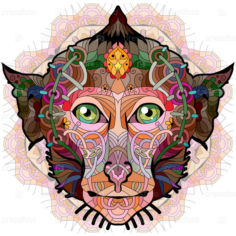 Голова обезьяны с мандалой в технике зентангл, стилизованная под дизайн футболки, татуировку и другие украшения