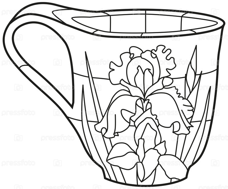Декоративная винтажная чашка для чая. Нарисованная вручную иллюстрация для раскрашивания