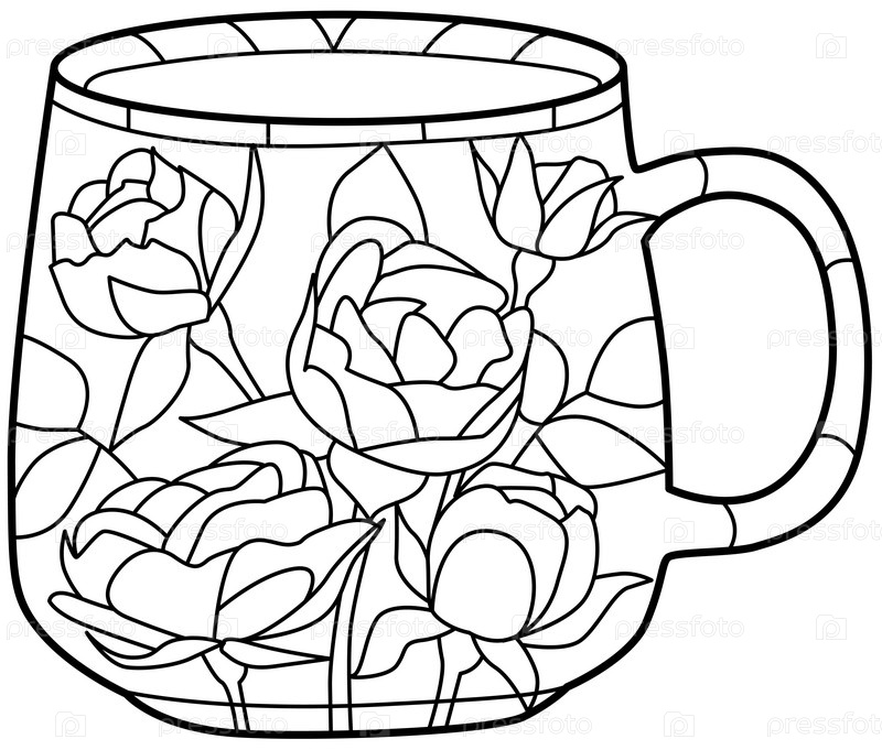 Декоративная винтажная чашка для чая. Нарисованная вручную иллюстрация для раскрашивания