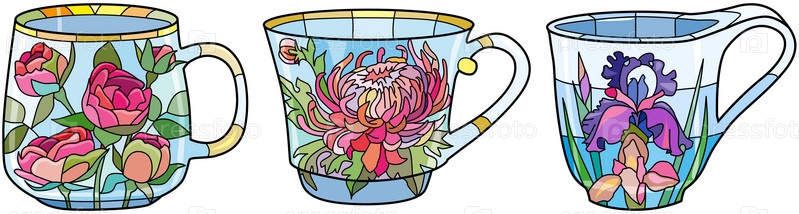 Декоративные винтажные чашки. Иллюстрация, нарисованная вручную