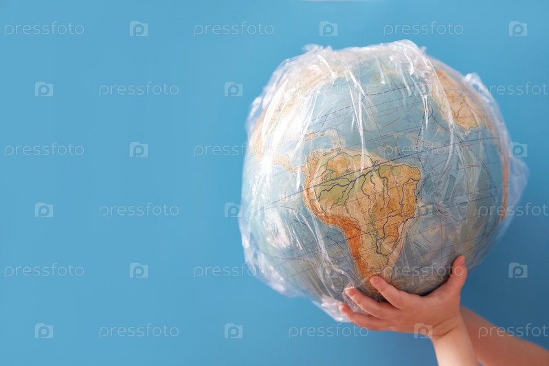 Концепция мира в стрейч-пленке. День Земли и забота о природе. Копировать пространство