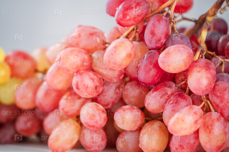 Крупный план грозди розового винограда. Свежий сочный красный виноград