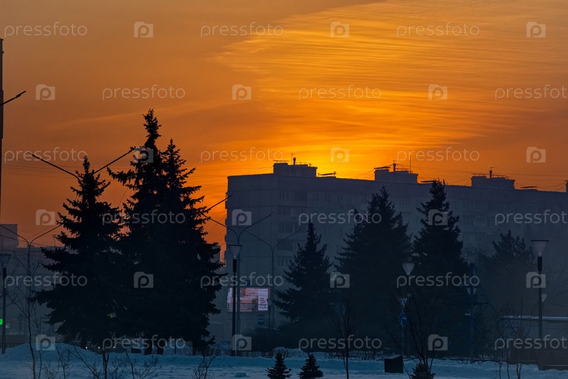Россия. Юг Западной Сибири. Утренние краски восходящего солнца морозным утром в пригороде Новокузнецка