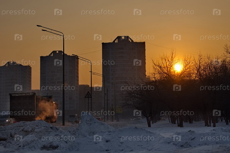 Россия. Юг Западной Сибири. Утренние краски восходящего солнца морозным утром в пригороде Новокузнецка