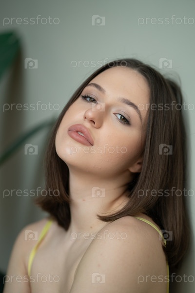 Портрет молодой красивой женщины с прямыми волосами в студии