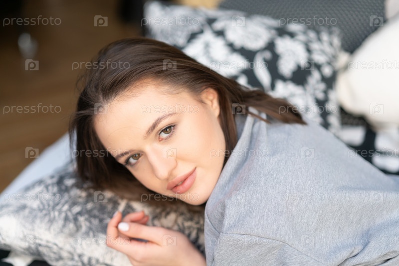 Портрет молодой красивой женщины с прямыми волосами в студии