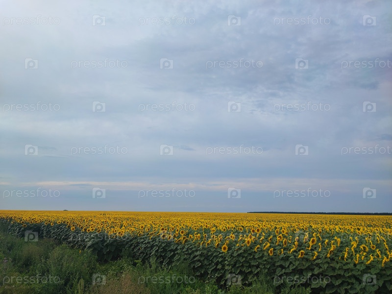 Поле желтых подсолнечников.A field of yellow sunflowers