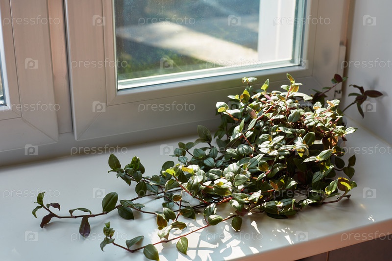 Традесканция мини растет на светлом подоконнике
