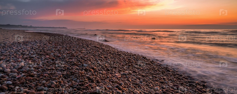 Красочный закат над морем и скалистым берегом
