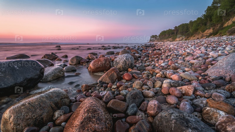 Красочный закат над морем и скалистым берегом
