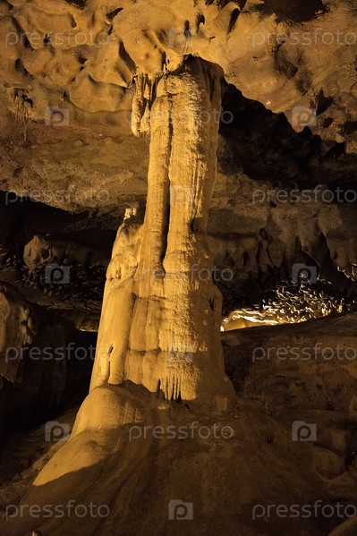 Сталагмитовое образование в глубинах пещер Бетаррам, Франция, раскрывающее мастерство и красоту природы