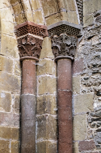 Изысканные каменные колонны с детальной резьбой подчеркивают богатую историю и мастерство Конка, Франция