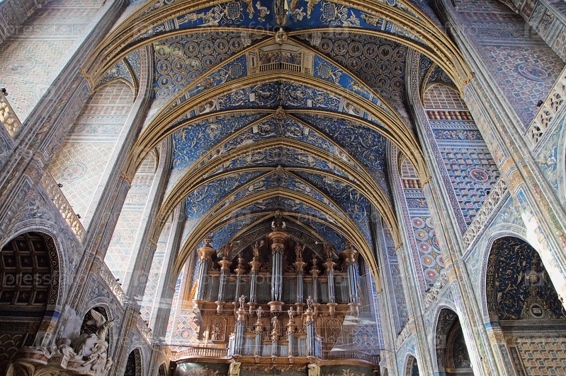 Исследуйте потрясающие арки и яркие фрески собора Сент-Сесиль солнечным днем