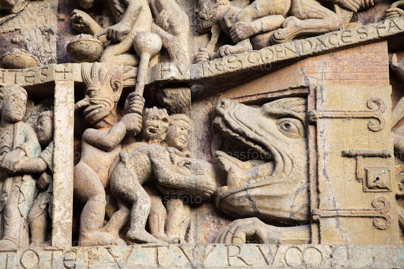 Каменные рельефы демонстрируют подробные изображения персонажей и событий из истории, предлагая заглянуть в искусство Конка, Франция