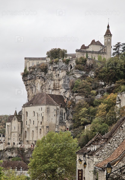 Рокамадур демонстрирует потрясающую архитектуру на склоне скалы среди пышной зелени и драматического неба, а также богатую историю