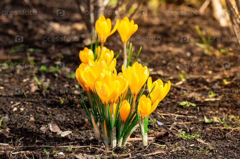 Цветы желтого крокуса