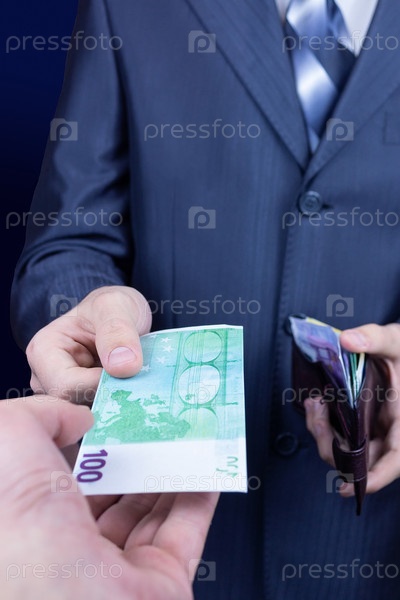 Бизнесмен дает деньги своему партнеру