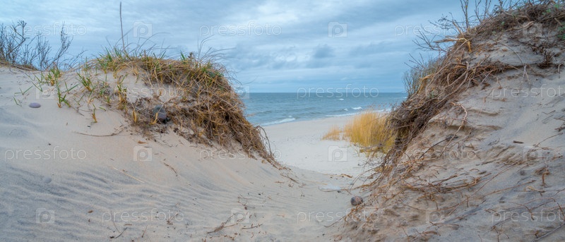 Лес на побережье Балтийского моря в пасмурный день осенью
