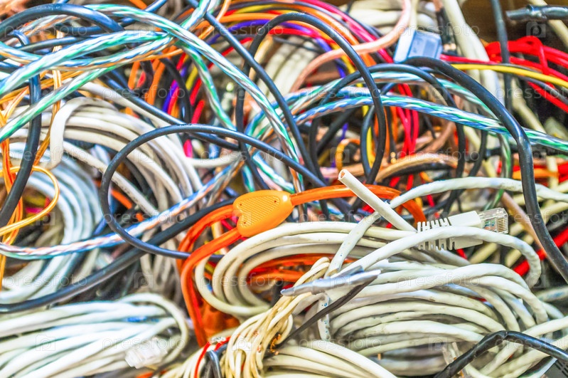 Много цветных проводов в куче, крупный план