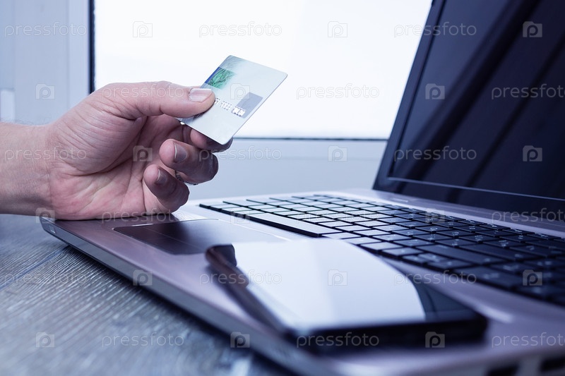 Банковская карта ноутбук бизнесмен